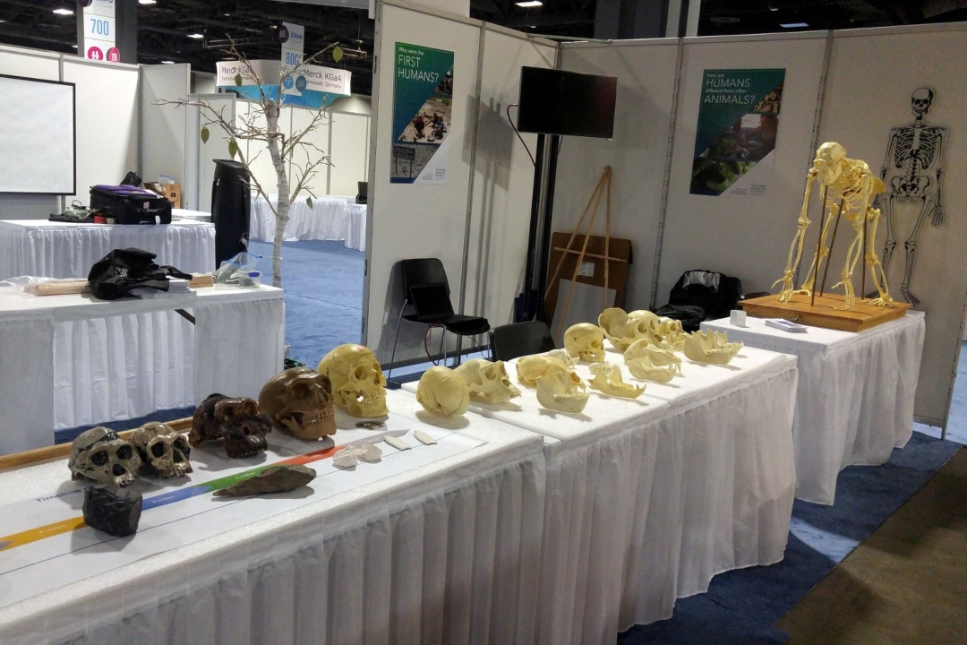 Doctoral students assist faculty and other students participating in The Scientist Is In discussions in the Smithsonian's Hall of Human Origins. The Scientist Is In program invites museum visitors to have informal conversations with scientists in a casual setting. PhD in Human Paleobiology students must assist with the discussion at least once during their first two years in the program. During the third through fifth years, students are then prepared to lead such discussions or participate in other research outreach programming.